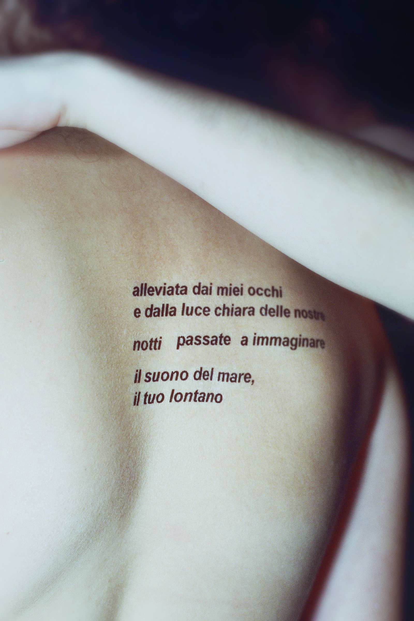 Questa serie fotografica cattura diversi tatuaggi lavabili applicati sulla pelle dei soggetti ritratti, in specifiche parti del corpo. I tatuaggi sono fatti dall'artista seguendo testi originali.